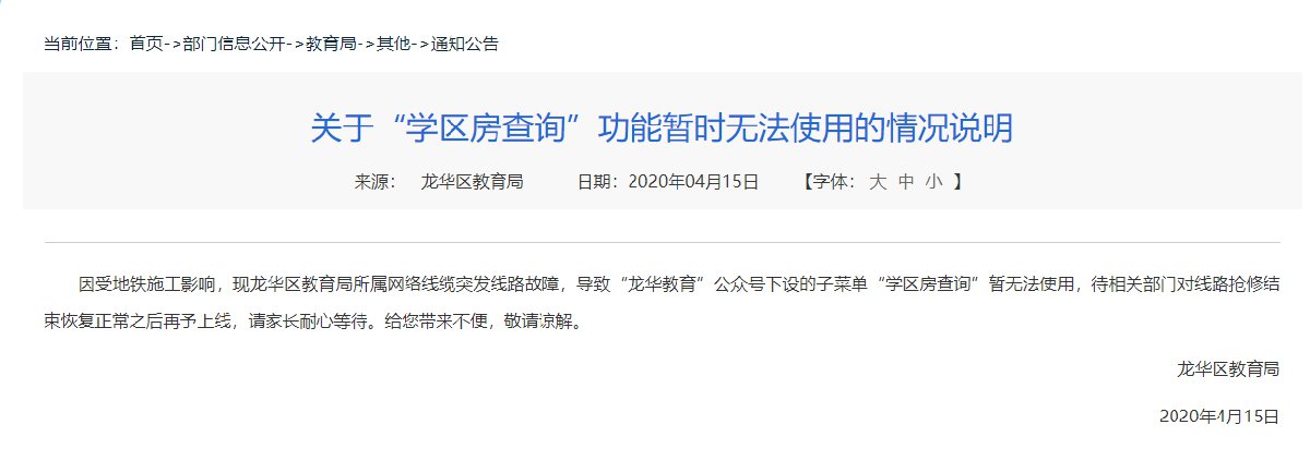 2020年4月15日,龙华区教育局发布通知,学区房查询暂时不能使用。