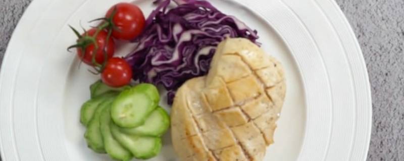 主料:鸡胸肉1块、紫甘蓝50克、黄瓜1根、秋葵1根、圣女果适量、食用油5毫升、胡椒粉3克、盐3克。