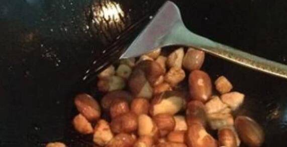 3、将焯好的菠萝蜜果核放在锅中小火烹炒二十分钟。期间可加入少量的盐来调味。