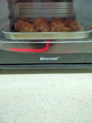 6、刷好油的鸡腿放入烤箱。温度200度烤30分钟。途中给小鸡腿翻一下面。