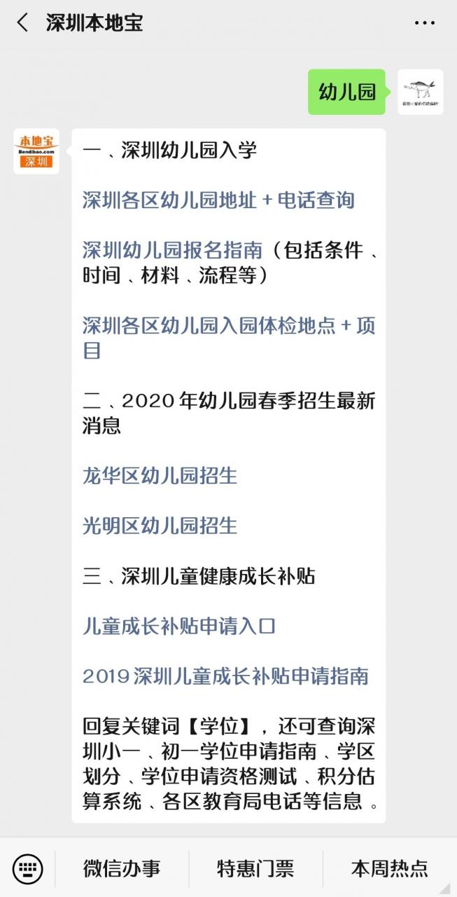 温馨提醒:微信搜索并关注【深圳内陆宝】微信民众号。在对话框发送【幼儿园】。即可获取深圳各区幼儿园地址及电话查询、入园体检地址、深圳各区幼儿园招生最新消息等信息。